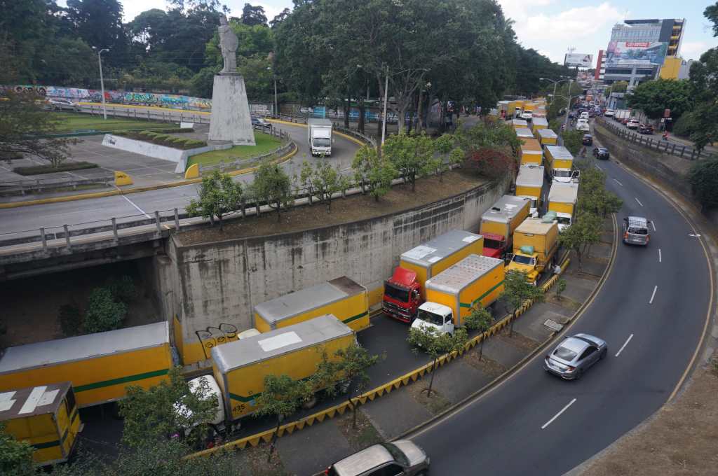 Simultáneamente, un grupo de pilotos de camiones recolectores inició una caravana desde la avenida Simeón Cañas hacia las instalaciones del Marn, lo que generó mayores complicaciones en el tránsito.
