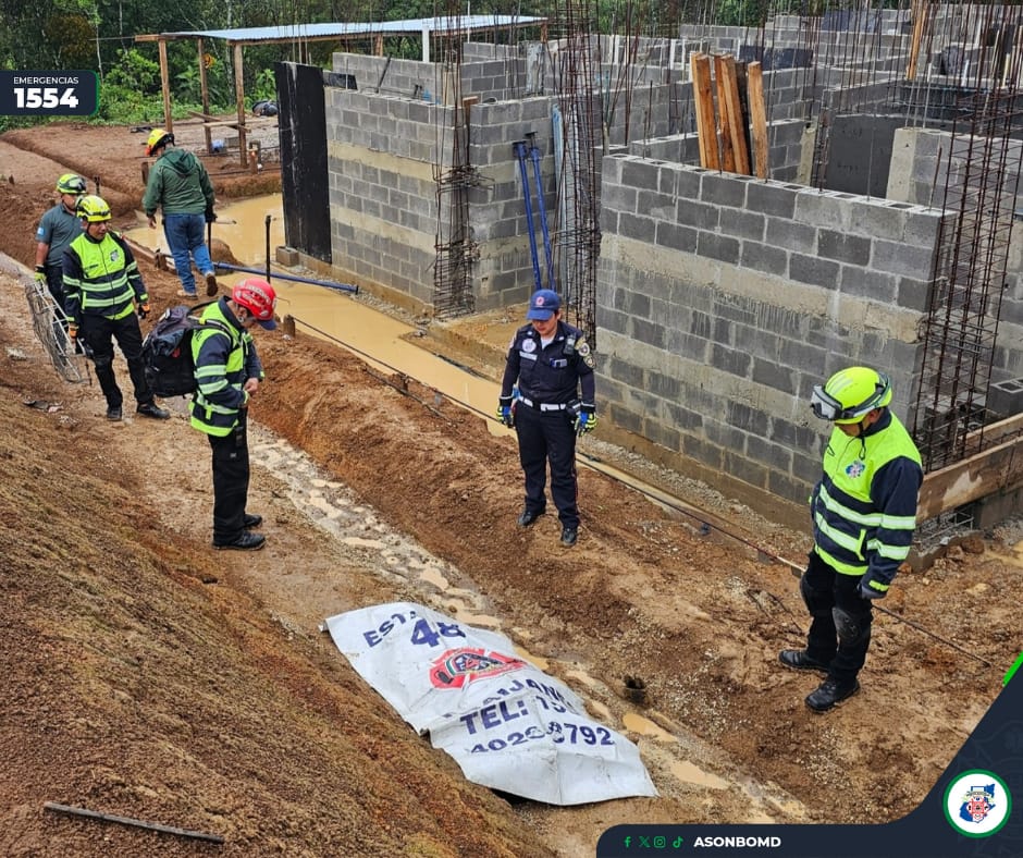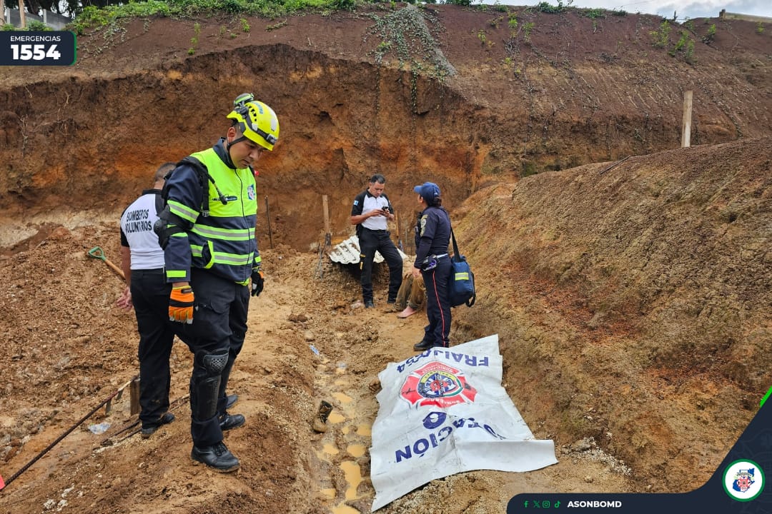 Los Bomberos Municipales Departamentales respondieron al incidente y rescataron a un hombre con lesiones leves, mientras que otro falleció al quedar soterrado, mientras trabajaban en la obra.
