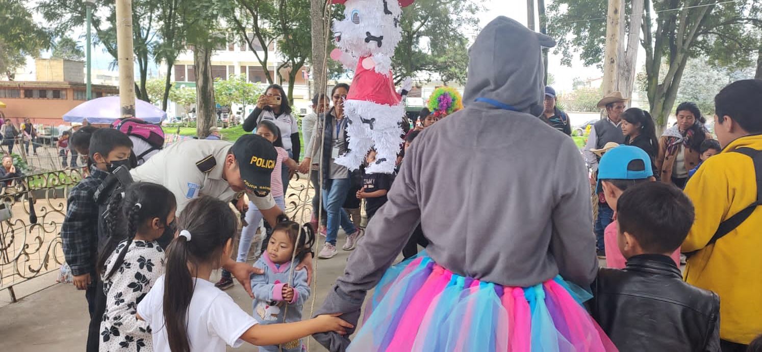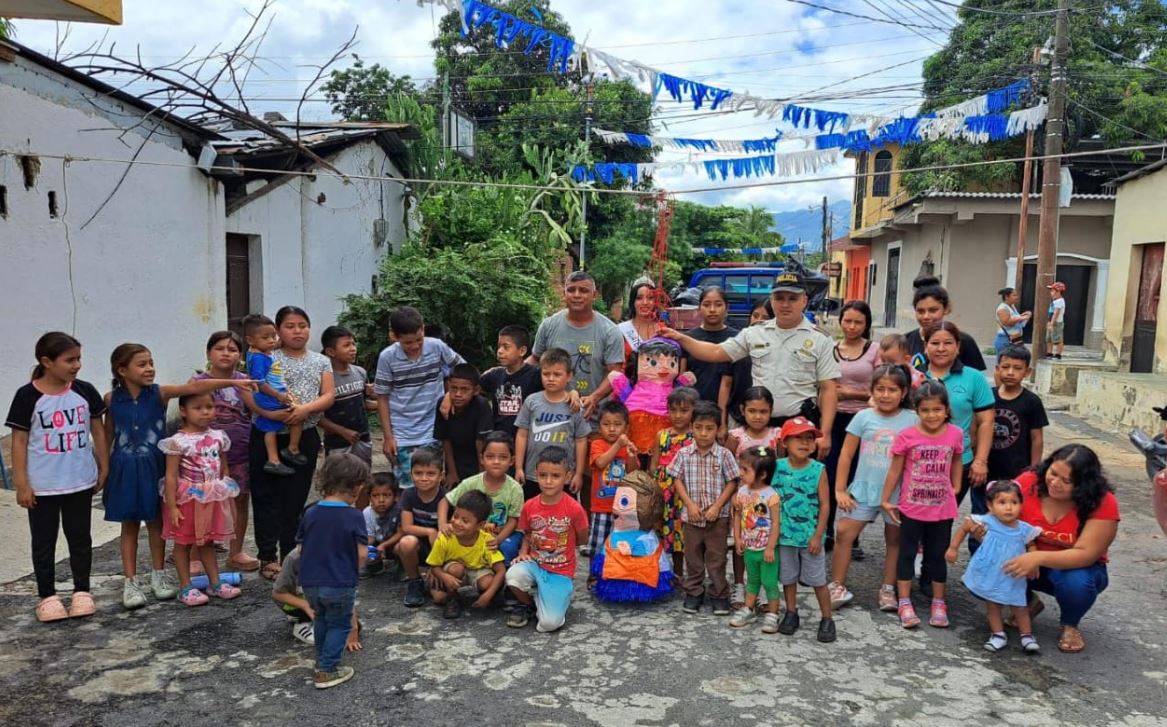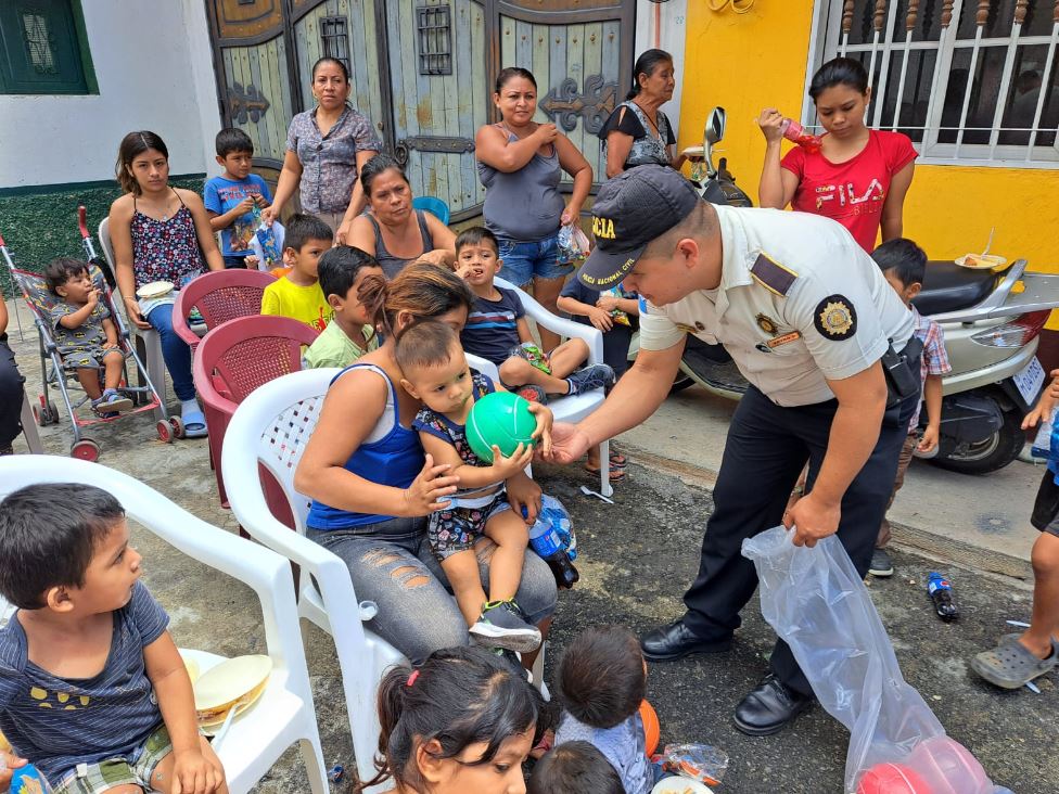 Las actividades también llegaron al barrio El Zapotillo, zona 5 de Chiquimula. Policías estuvieron a cargo de juegos recreativos, entrega de juguetes, quiebra de piñatas y un refrigerio, para un total de 178 niños.