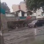 En los videos se puede observar como las aguas pluviales con fuertes corrientes se desbordan por las calles, afectando a motocicletas que se encontraban estacionadas en las calles.