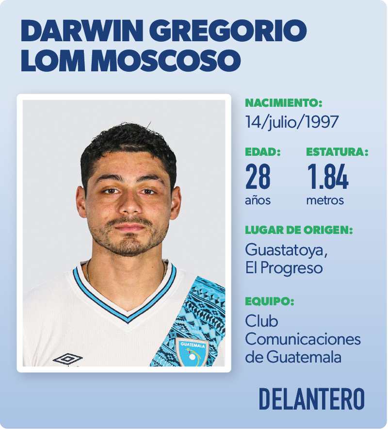 Darwin Gregorio Lom Moscoso, actual delantero de Comunicaciones FC, vistió por primera vez los colores de la Selección de Guatemala en el 2020, durante la era del técnico Marvin Amarini Villatoro.