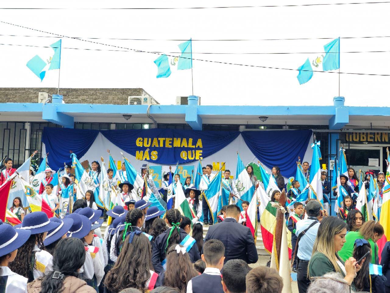 Los primeros en desfilar fueron los más pequeños, representantes del sector preprimario del sector privado. Niños de jardines infantiles y guarderías lucieron trajes típicos guatemaltecos y llevaron banderas en sus manos.