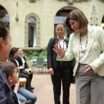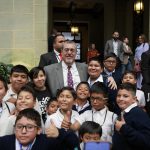 La vicepresidenta Karin Herrera, en medio de su agenda de trabajo y mientras pasaba por el patio de la Paz, tomó un momento para acercarse a los niños que emocionados saludaron a la vicemandataria.