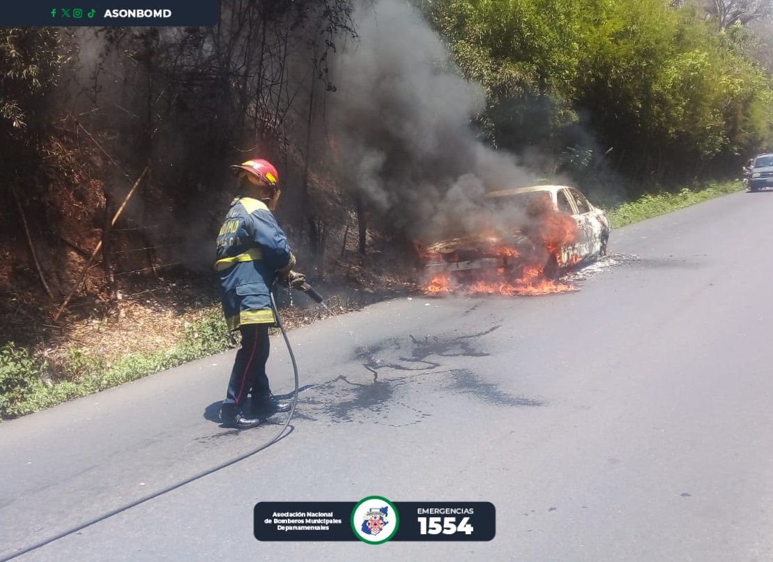 Vehículo prende en llamas en aldea San Luis, Palencia
