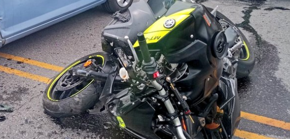 De acuerdo con la información preliminar, un vehículo impactó contra una motocicleta, provocando que el conductor del vehículo de dos ruedas cayera al asfalto.