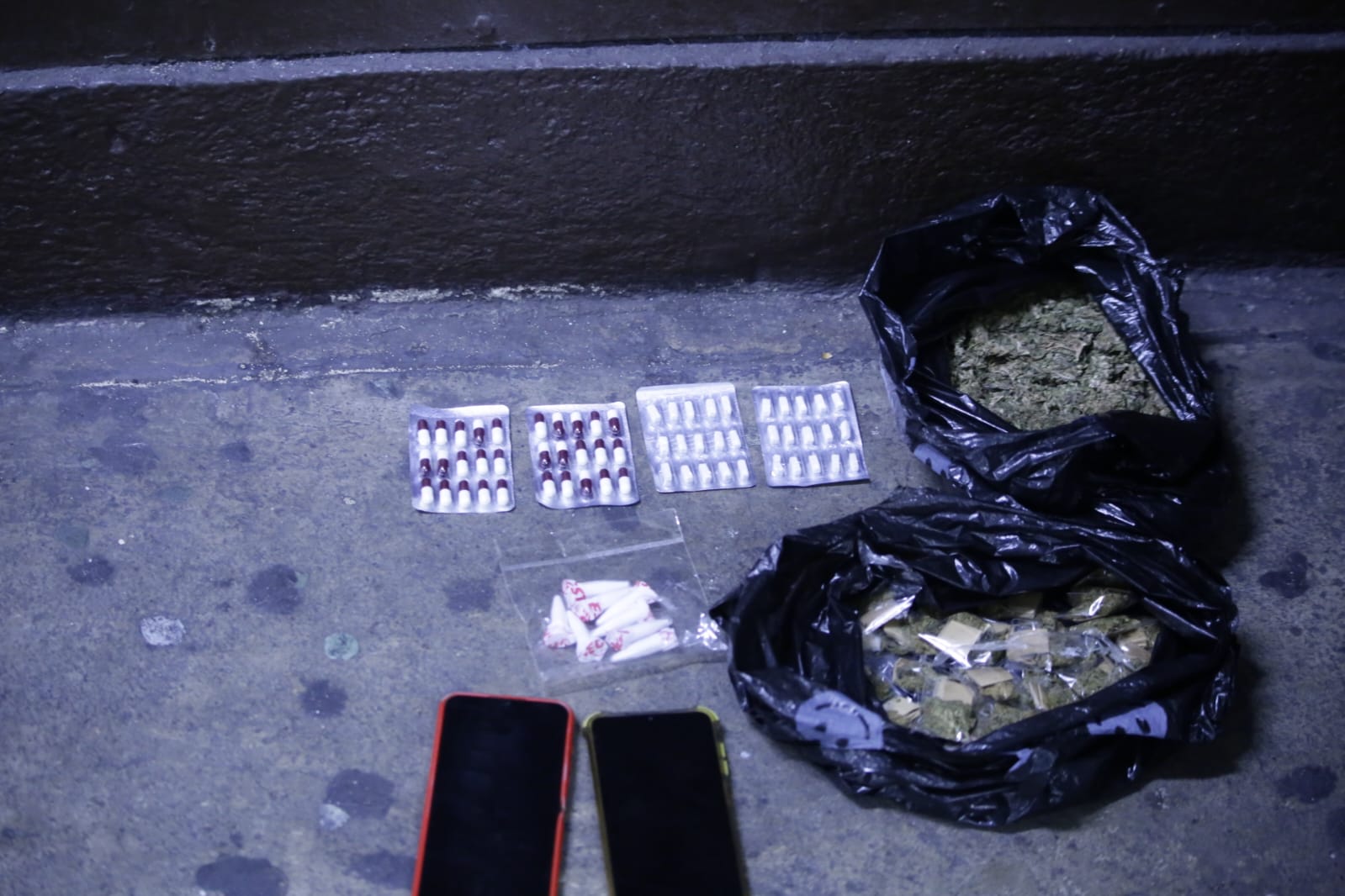 Hubo una persecución de tres kilómetros que terminó con la detención de ambos en el kilómetro 14 de la carretera a El Salvador, donde se les descubrieron y confiscaron 40 envoltorios llenos y una segunda bolsa de marihuana, dos blísteres con un total de 30 piedras de crack, 8 colmillos de cocaína, 30 cápsulas de otro estupefaciente y 2 teléfonos celulares.
