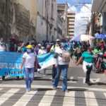 Un grupo de trabajadores de salud lleva a cabo una manifestación este viernes 20 de septiembre en la Ciudad de Guatemala. Esta situación genera complicaciones para la circulación vehicular, tomando en cuenta que los ciudadanos realizan un recorrido con dirección a la zona 1.