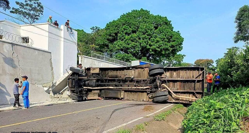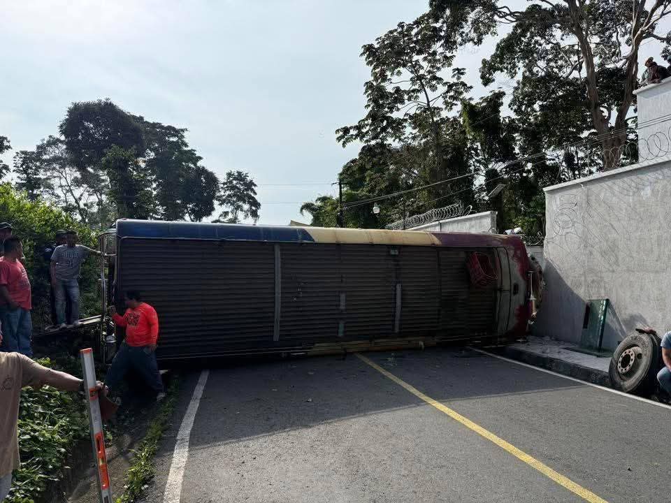 Piloto pierde el control y vuelca en ruta a Pueblo Nuevo Suchitepéquez