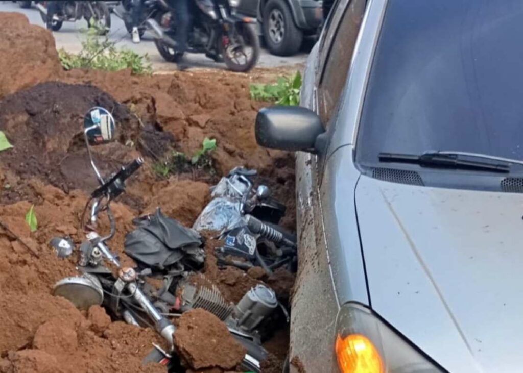 El deslizamiento de tierra cayó sobre dos personas que se movilizaban en motocicleta y un vehículo liviano, lo que provocó la inmediata movilización de los cuerpos de socorro.
