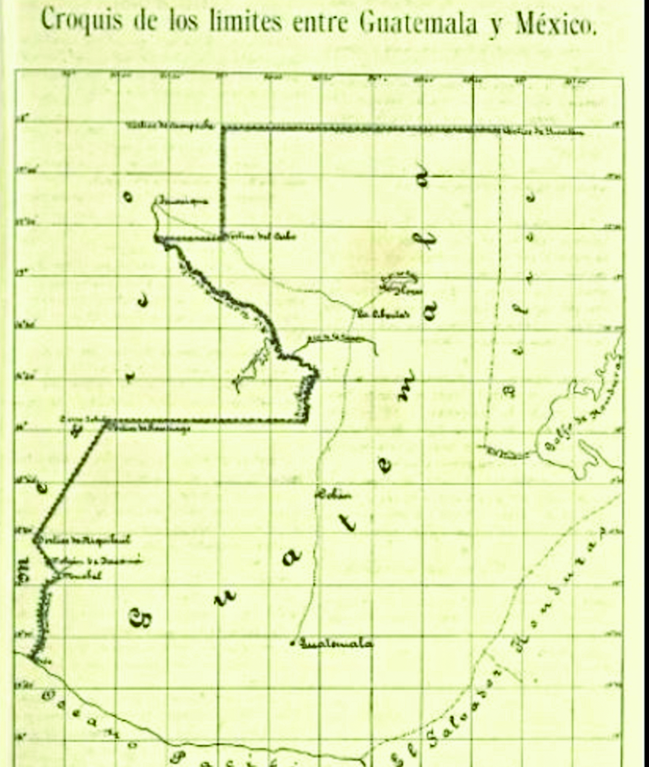 Justo Rufino Barrios renuncia a reclamo territorial sobre parte de Chiapas y Soconusco. Cedió 27 mil 949 km2 y recibió 3 mil 105 del lado de Petén.