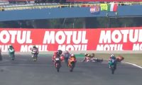 Un ciclista del equipo Jumbo, el alemán Tony Martin, ubicado en las primeras posiciones del pelotón, se golpeó con la pancarta de una espectadora que invadía la calzada. Al caerse, varios corredores se fueron al suelo, formando una enorme montonera en la estrecha carretera.