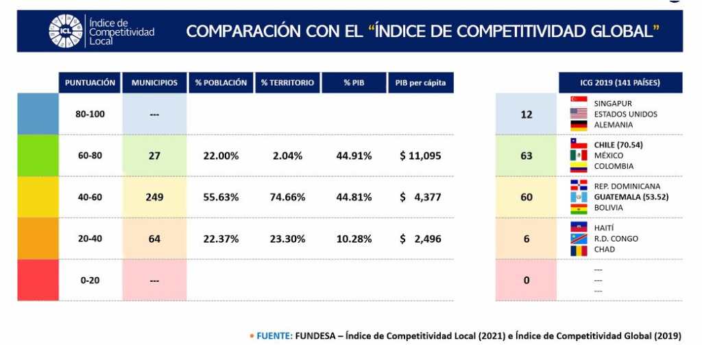 Jorge Benavides, socio investigador de Fundesa, encargado del estudio comentó que sólo 12 países a nivel mundial tienen entre 80 y 100 puntos en cuanto a competitividad; y lastimosamente Guatemala no reporta municipios en esa categoría, por lo tanto, el reto es lograr que algún municipio de ubique en esa categoría en el futuro cercano.