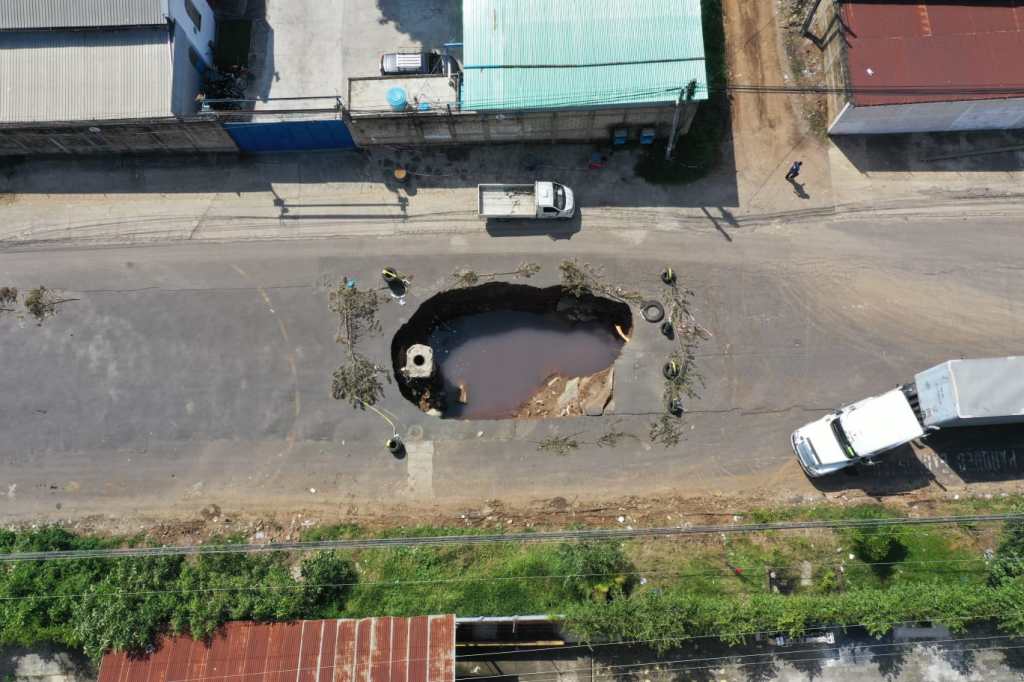 “Pedimos mucha precaución a los transeúntes y a los pilotos del transporte pesado al momento pasar por este sector, donde ha quedado colapsada la tubería de drenaje”, dijo que portavoz.