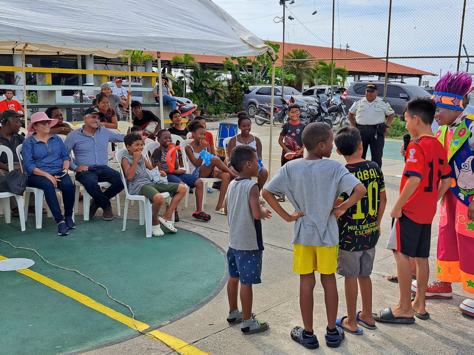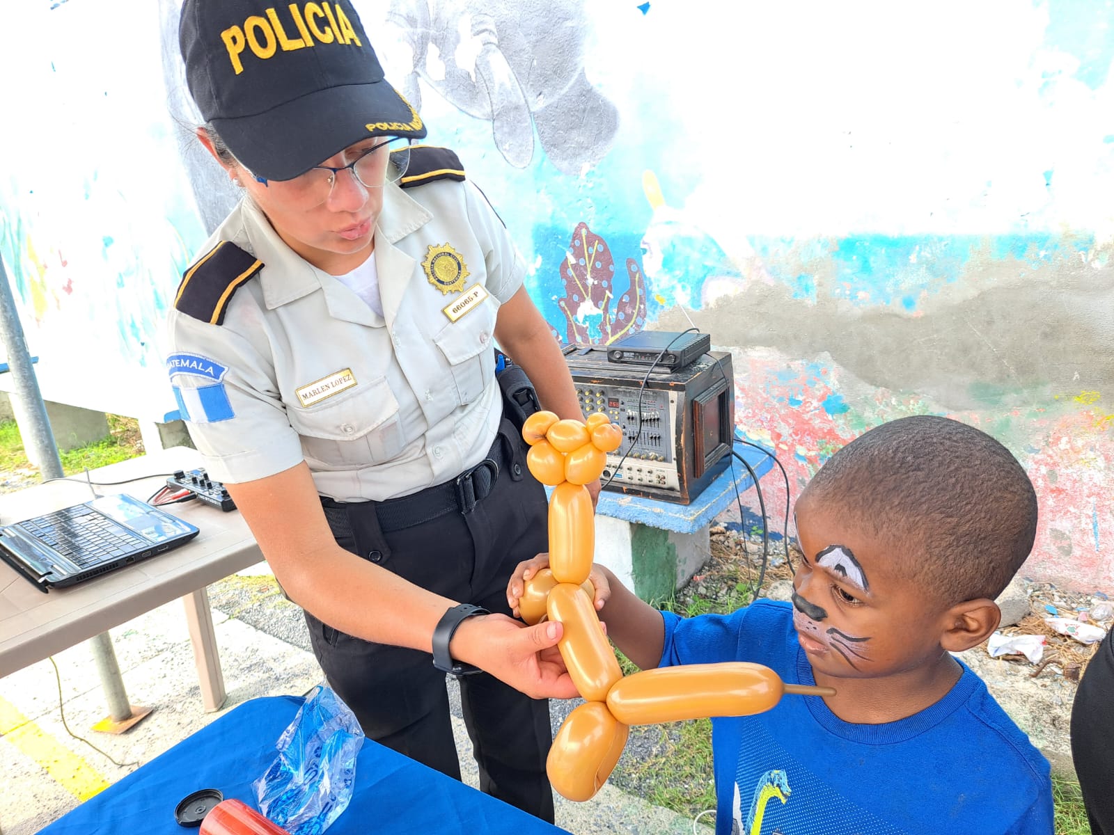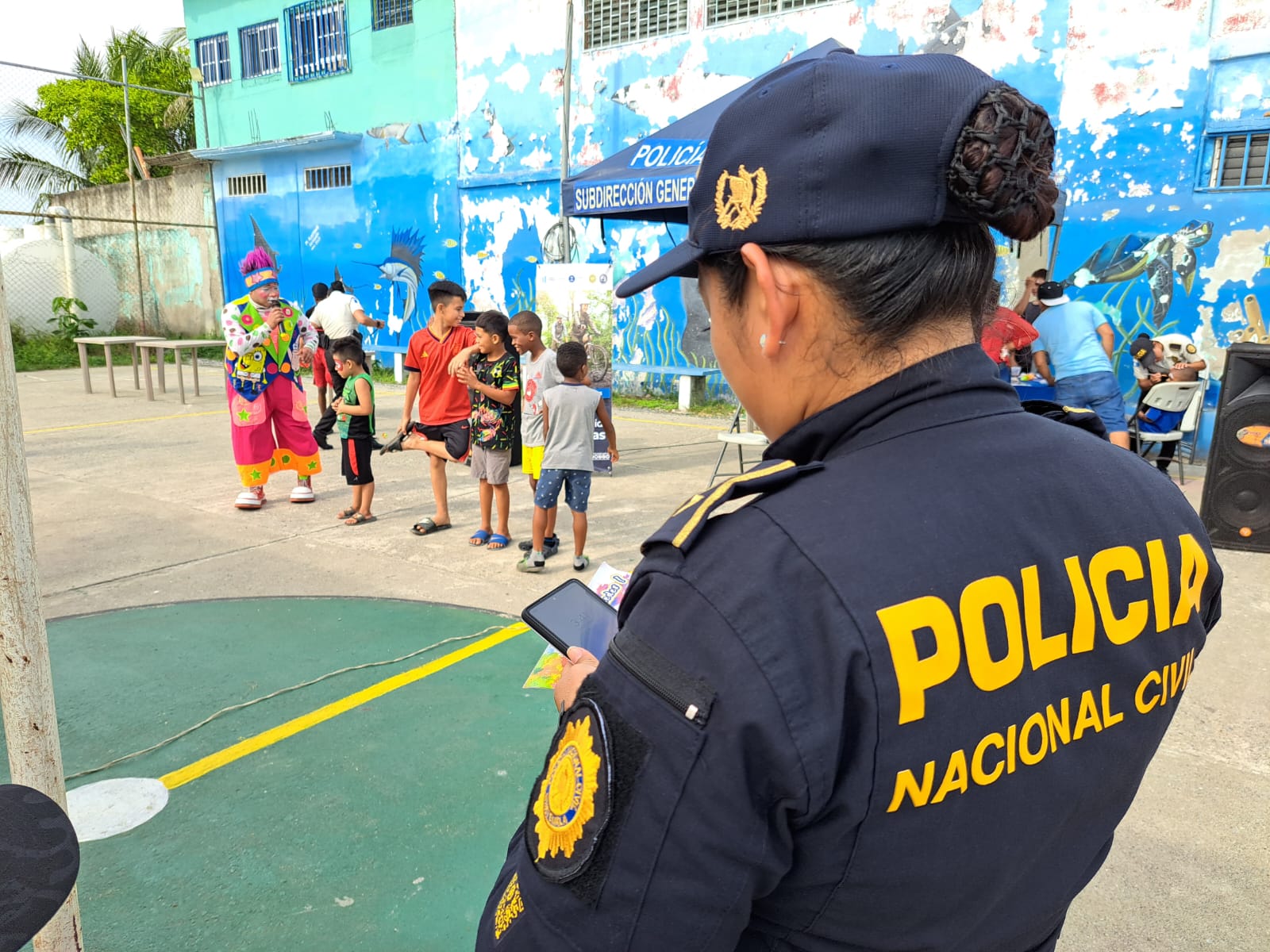 Entre las actividades se desarrollaron juegos, pintacaritas, globoflexia. También se entregó material preventivo, saltarines, participa el payasito Policito y la Patrulla Buga, de la Brigada Infantería de Marina.