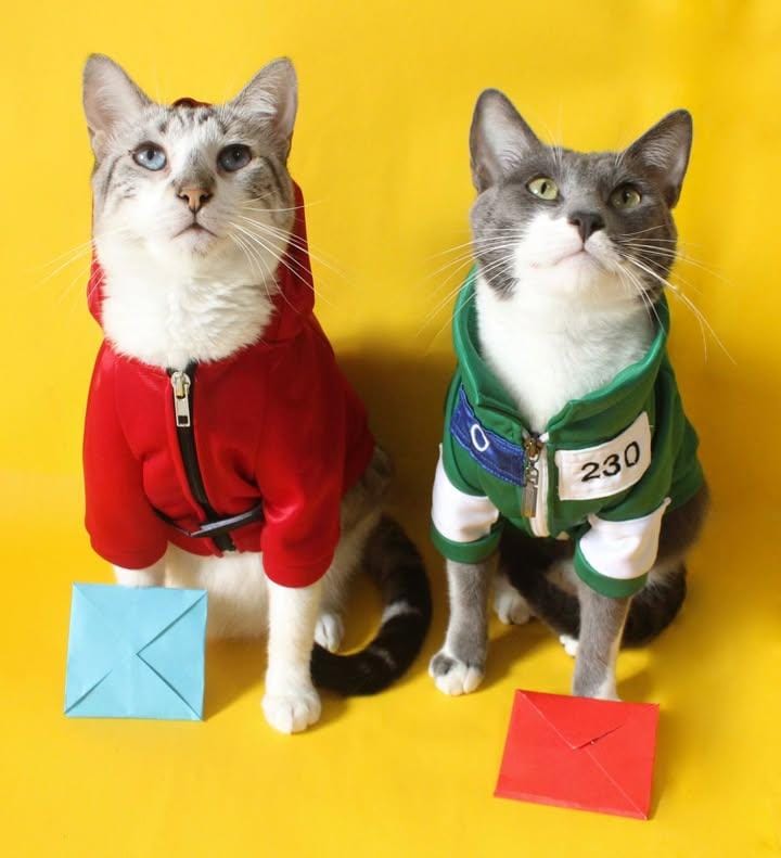 Películas o series como El juego del calamar es uno de los preferidos de los dueños para disfrazar a sus mascotas de una manera original. (Foto Prensa Libre, cortesía de Juanita Esparza).
