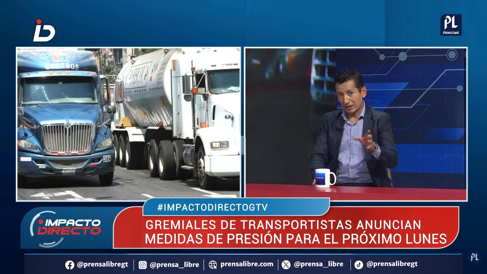 Durante el programa Impacto Directo, de Guatevisión, representantes del sector transporte, analistas e integrantes del panel expusieron sus posturas sobre la manifestación convocada para el 23 de marzo, centrada en el alza de los combustibles, la aplicación del sistema limitador de velocidad y el rechazo a disposiciones relacionadas con el etanol carburante.