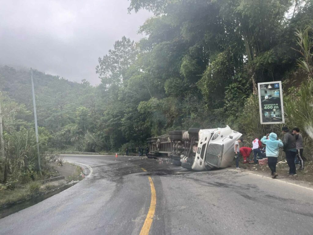 Tráiler vuelca en Purulhá, Baja Verapaz y complica el tránsito