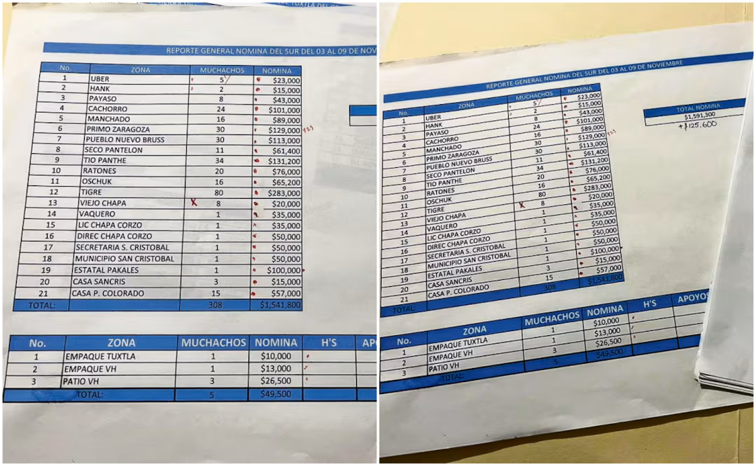 El medio mexicano tuvo acceso a un documento contable atribuido al cartel Jalisco Nueva Generación, en el que se reportan gastos semanales por casi 2 millones de pesos, unos Q889 mil, para sostener operaciones en Chiapas, el estado mexicano fronterizo con Guatemala.