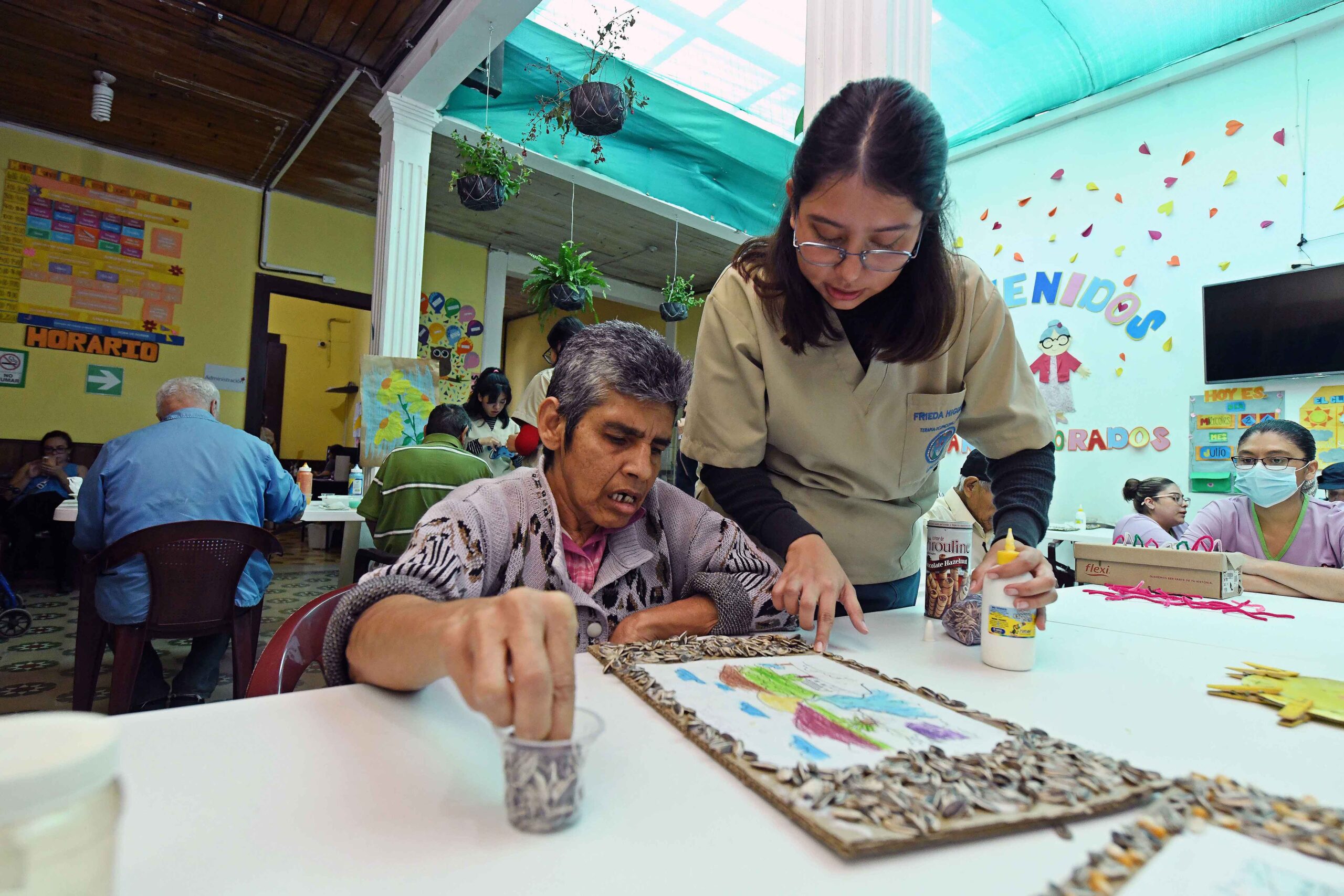 Ahí reciben terapia física y ocupacional, alimentación, recreación, talleres de pintura y manualidades, entre otras atenciones que los adultos mayores pueden disfrutar.