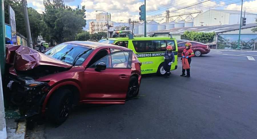 Un accidente de tránsito se registró en la calzada Atanasio Tzul y 53 calle de la zona 12 capitalina, donde el conductor de un vehículo perdió el control y colisionó contra un poste.