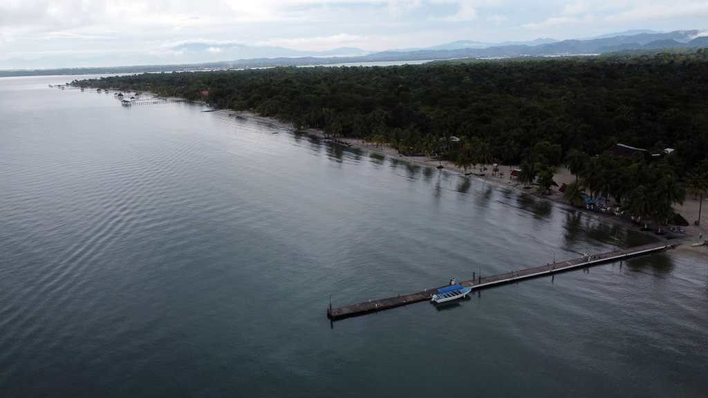 El viaje comenzó a las 6.00 horas en Punta de Palma. Un dron recorrió una gran extensión del mar durante más de media hora, sin éxito. Fue necesario trasladarse al siguiente punto: la bahía de Amatique, un sitio donde el agua es más tranquila y los lancheros circulan con poca frecuencia. Solo se escuchaba el oleaje al chocar contra la embarcación y el sonido de las gaviotas y de los pelícanos al volar por el lugar.