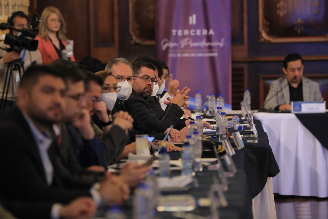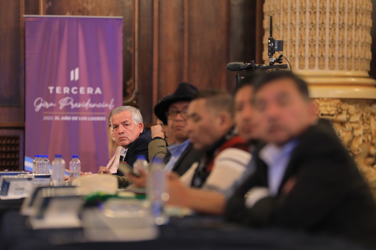 Ciudad de Guatemala, 1 dic (AGN).- El presidente Alejandro Giammattei dio la bienvenida a alcaldes de Quiché, en el Palacio Nacional de la Cultura, como parte de la tercera gira presidencial 2022. En la sesión de trabajo se dio seguimiento a los proyectos para ese departamento, que para el período 2020-2023 equivalen a 9 mil 50.47 millones de quetzales.