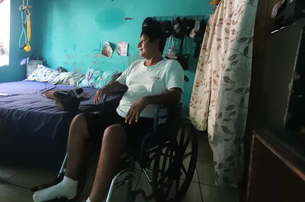 Gracias a los ejercicios, que también hace en casa, y al apoyo familiar, la recuperación de la movilidad ha sido gradual. Ya puede levantar un poco las piernas, pero aún no tiene la fuerza para sostenerse de pie. Nerida es quien lo levante de la cama y de la silla de ruedas para que pueda dar pequeños pasos.